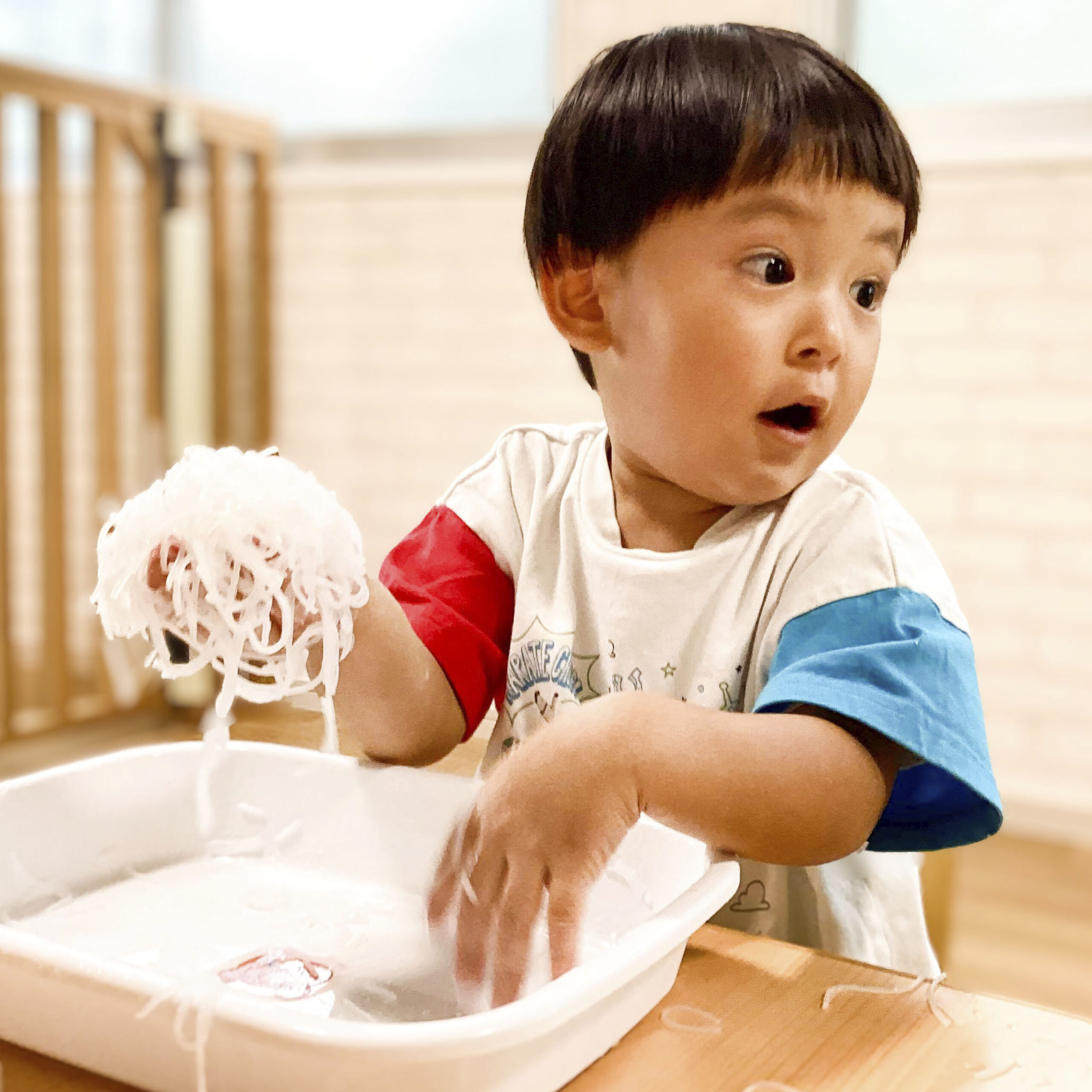 そんな中、子どもたちは、春雨を使った感触遊びを夢中で楽しんでいました🤗