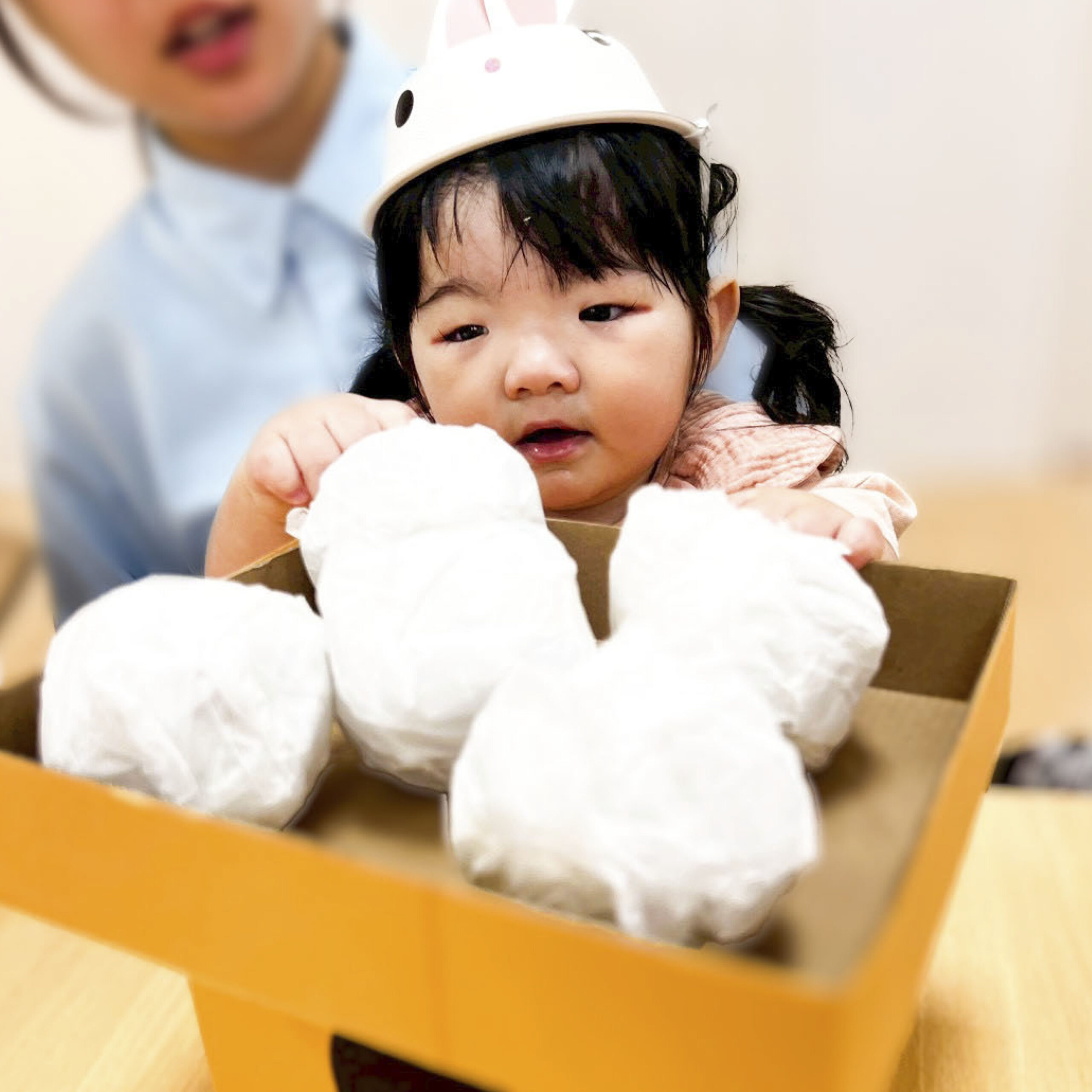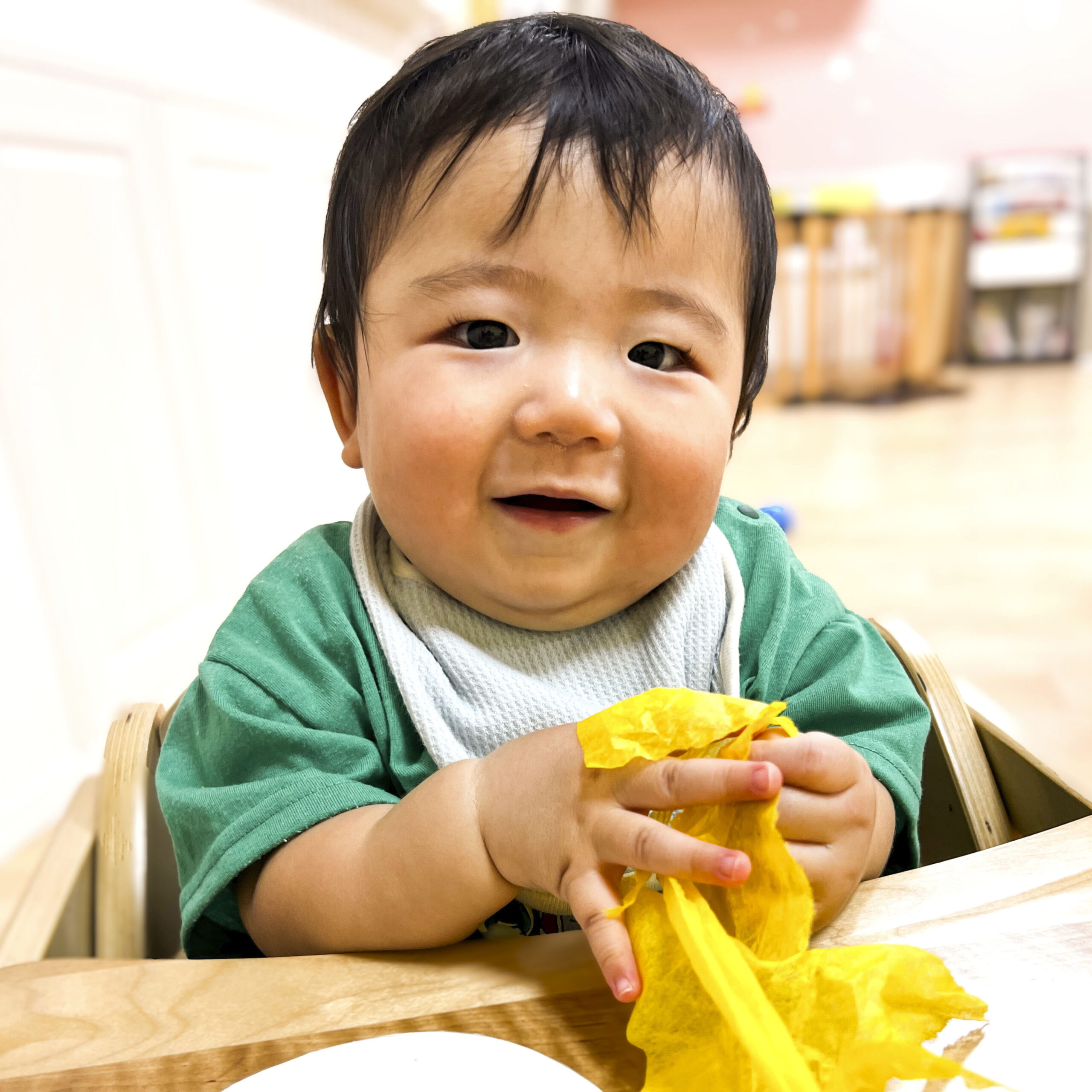 月齢の低いお友だちも、やわらかなお花紙を握ったり、ちぎったりして感触を楽しんでいましたよ😊