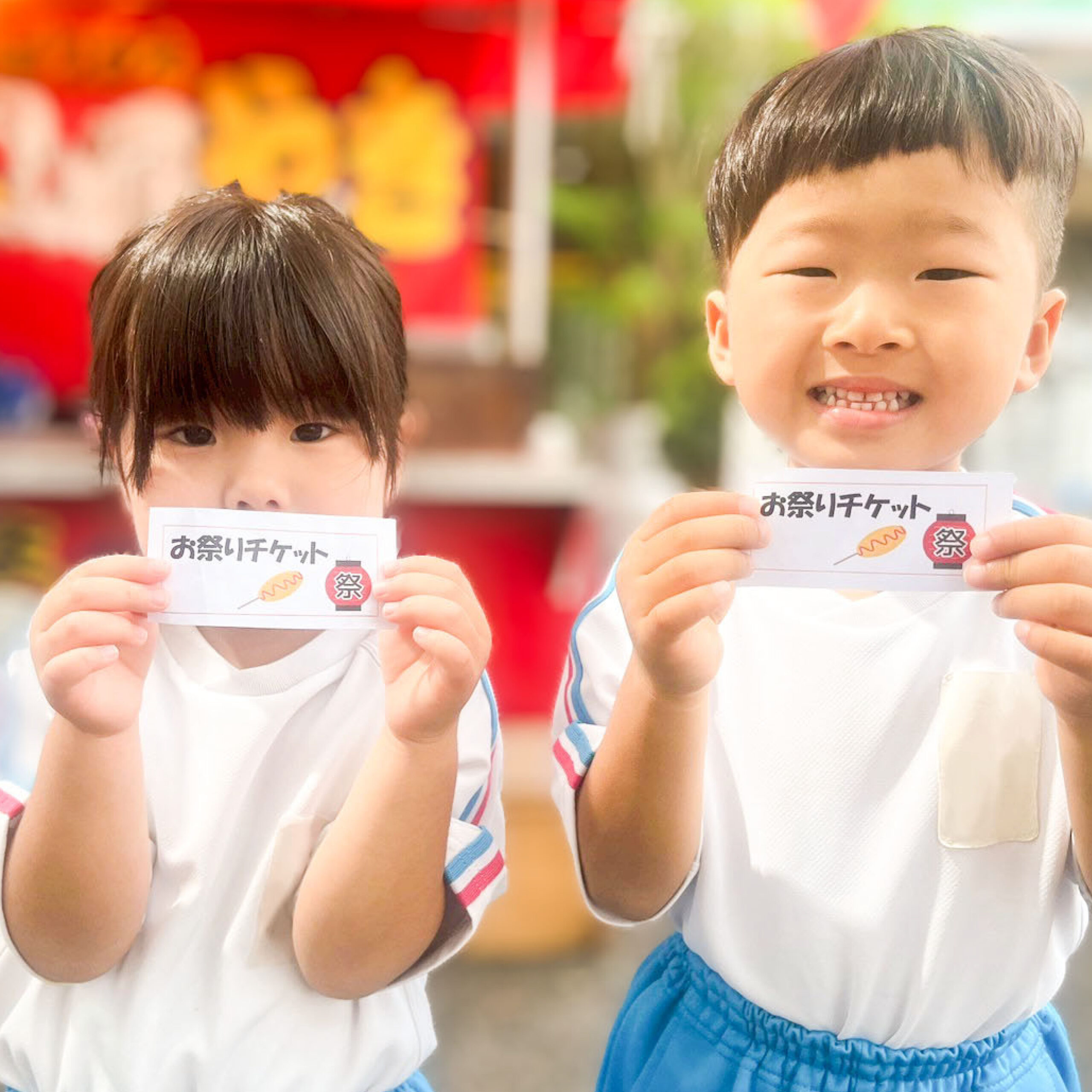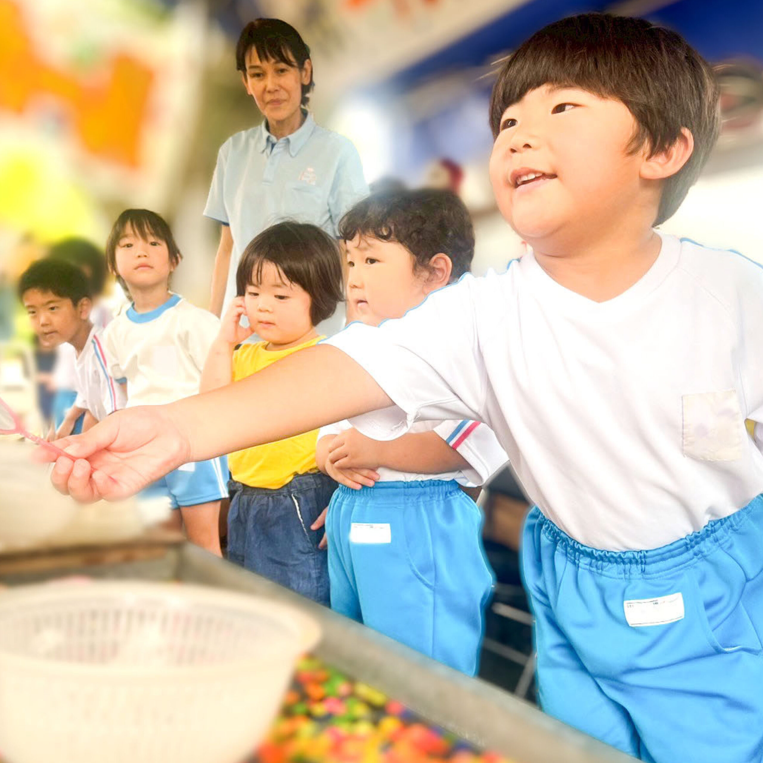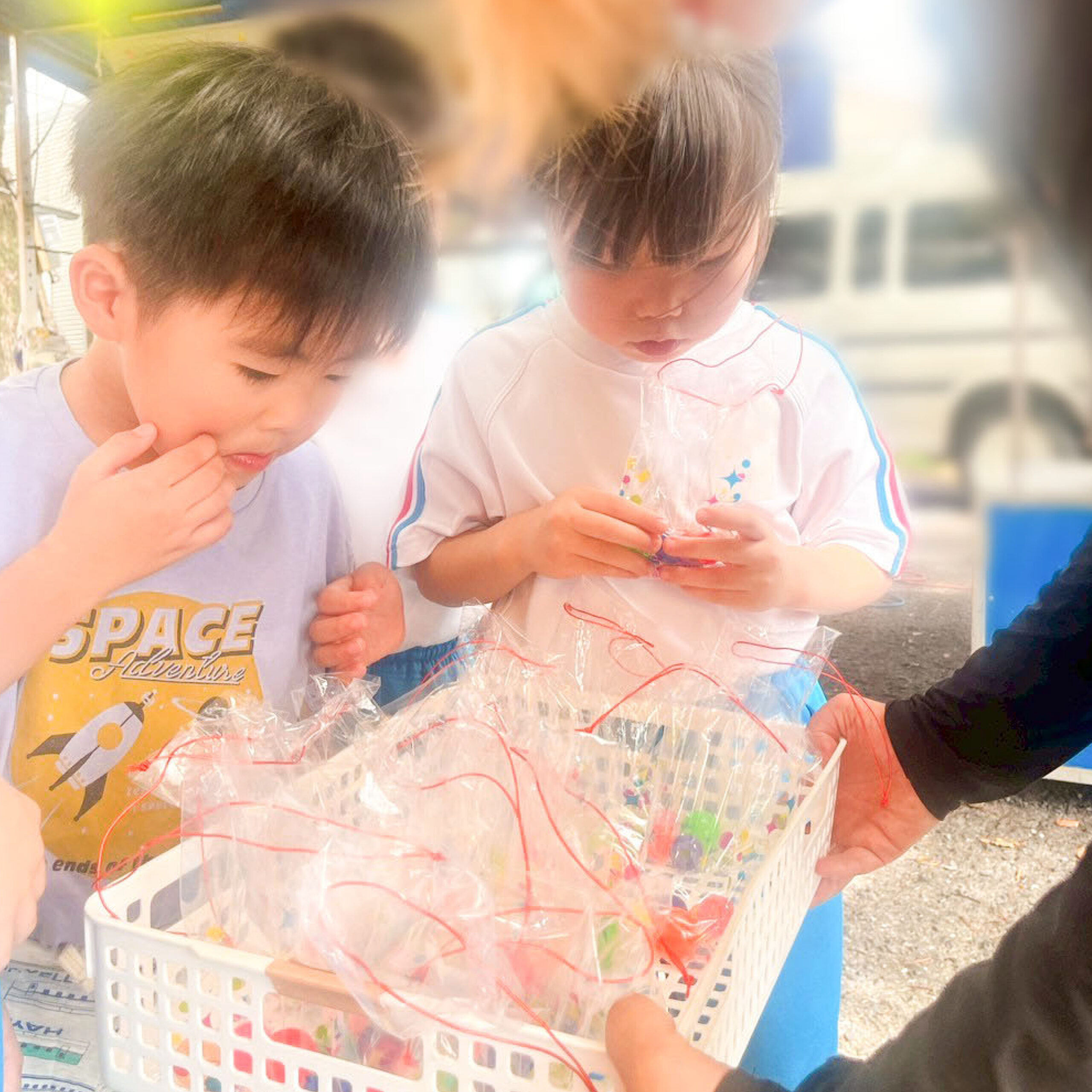 露店商組合の方々のご厚意で、3歳児以上の園児さん達に屋台体験をさせていただきました✨