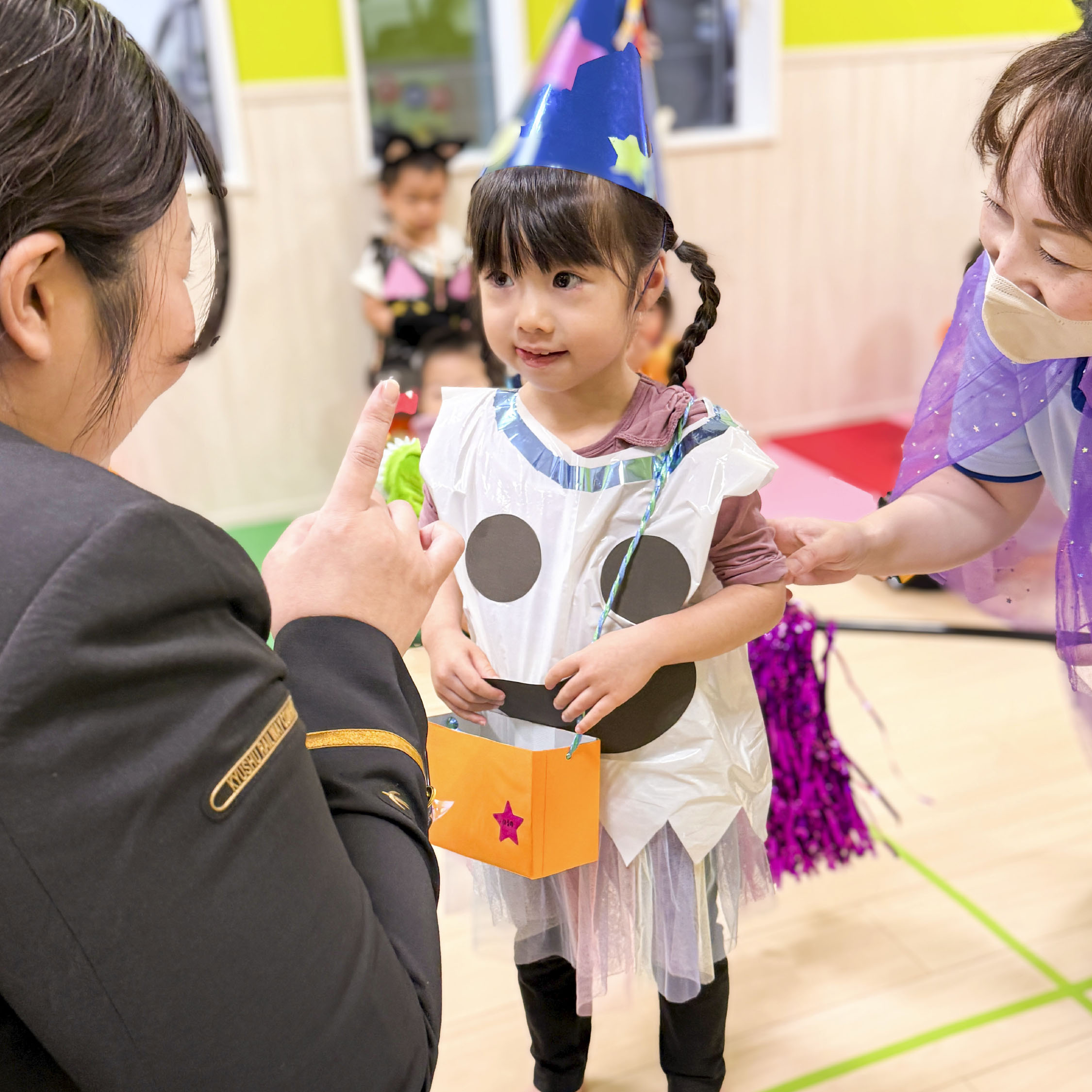 ハロウィンお楽しみ会の日は、南福岡駅の駅長さんたちが保育園に遊びに来てくれました👩✈️👨✈️