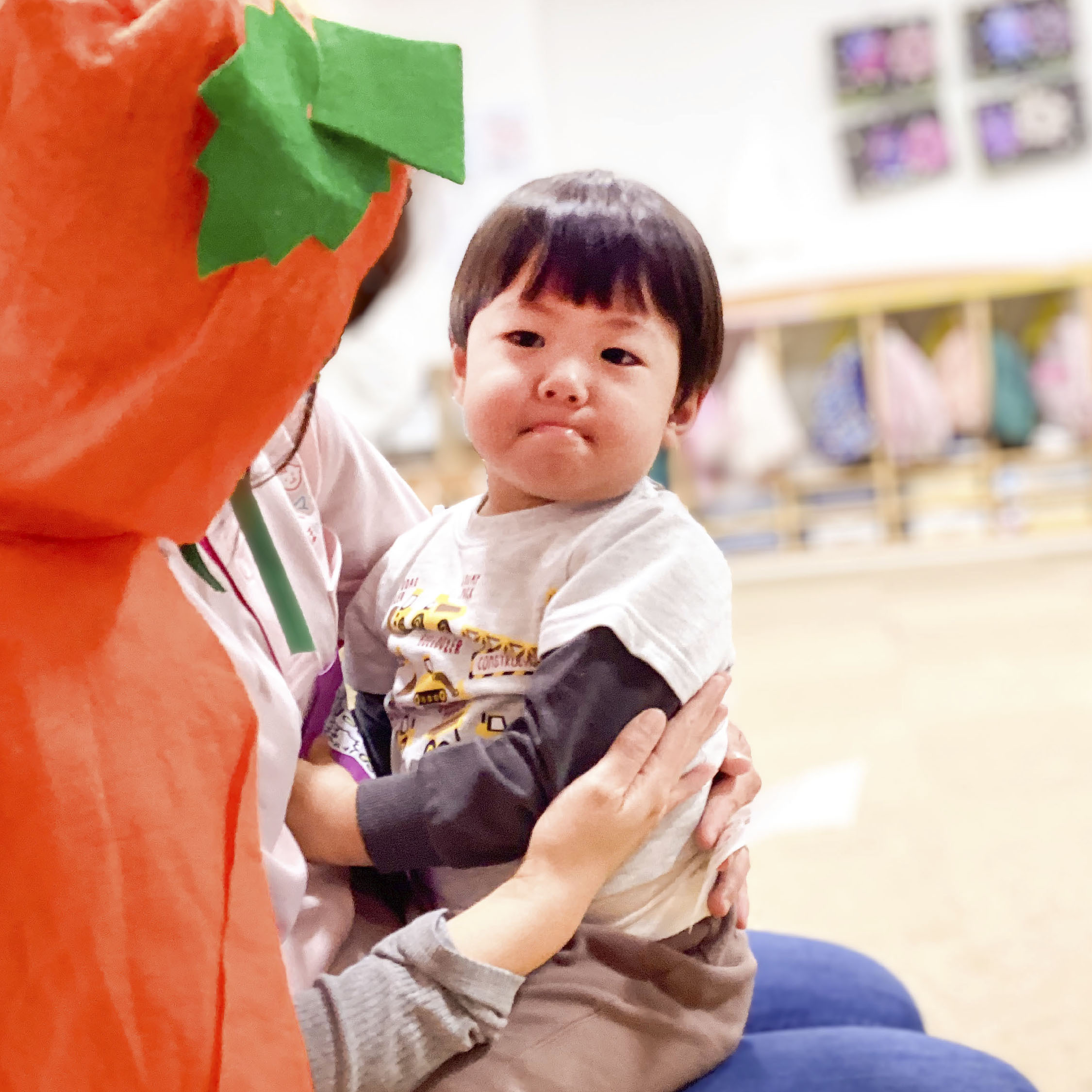 お部屋に入ると、仮装した先生たちが「ハッピーハロウィン🤩」「トリック・オア・トリート♪」の掛け声に、ビックリ&嬉しそうな表情の子どもたち👻✨