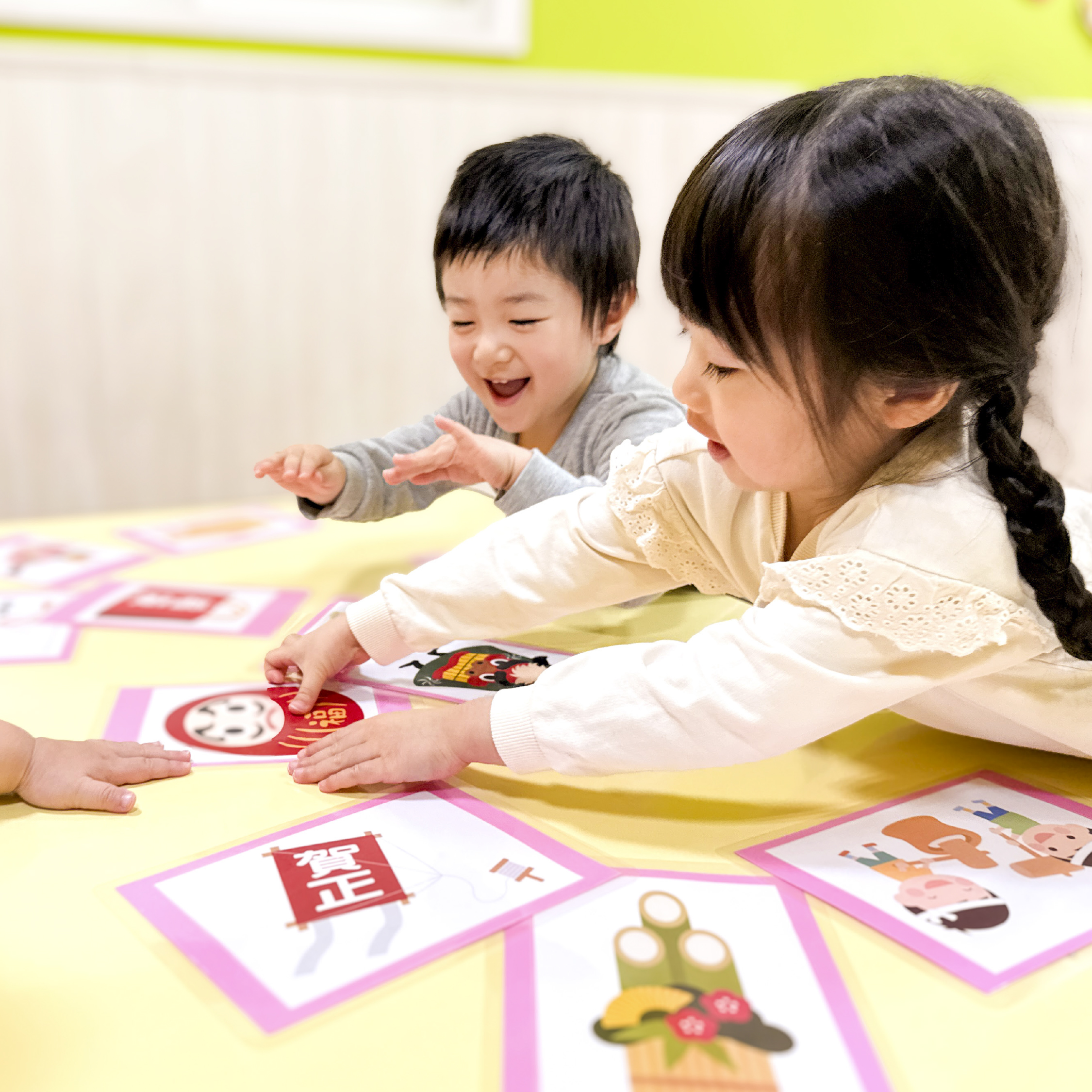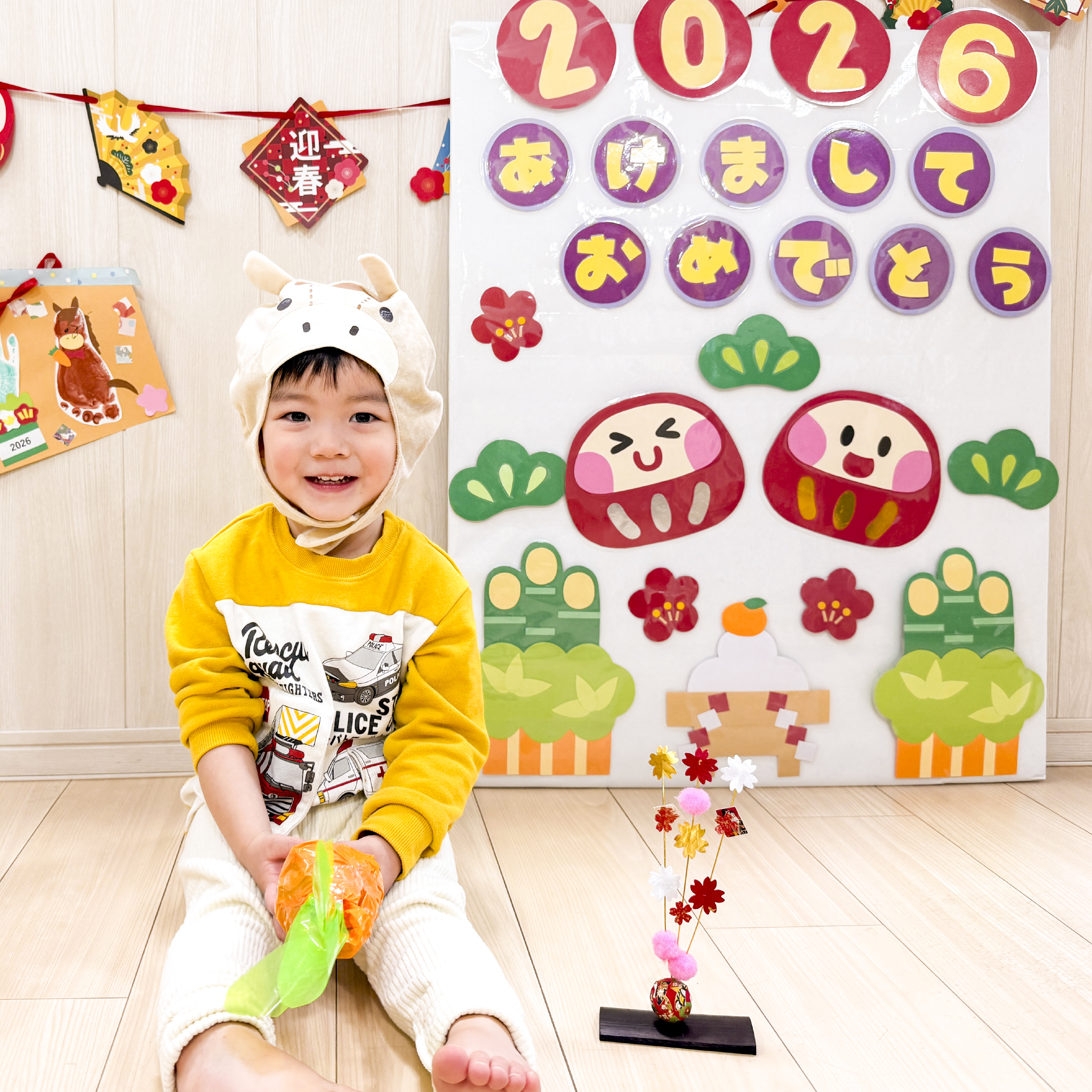 新年お楽しみ会では、「絵合わせかるた」や「コマ回し」などのお正月遊びや、縁起物の「だるま落とし」で盛り上がりました🤗