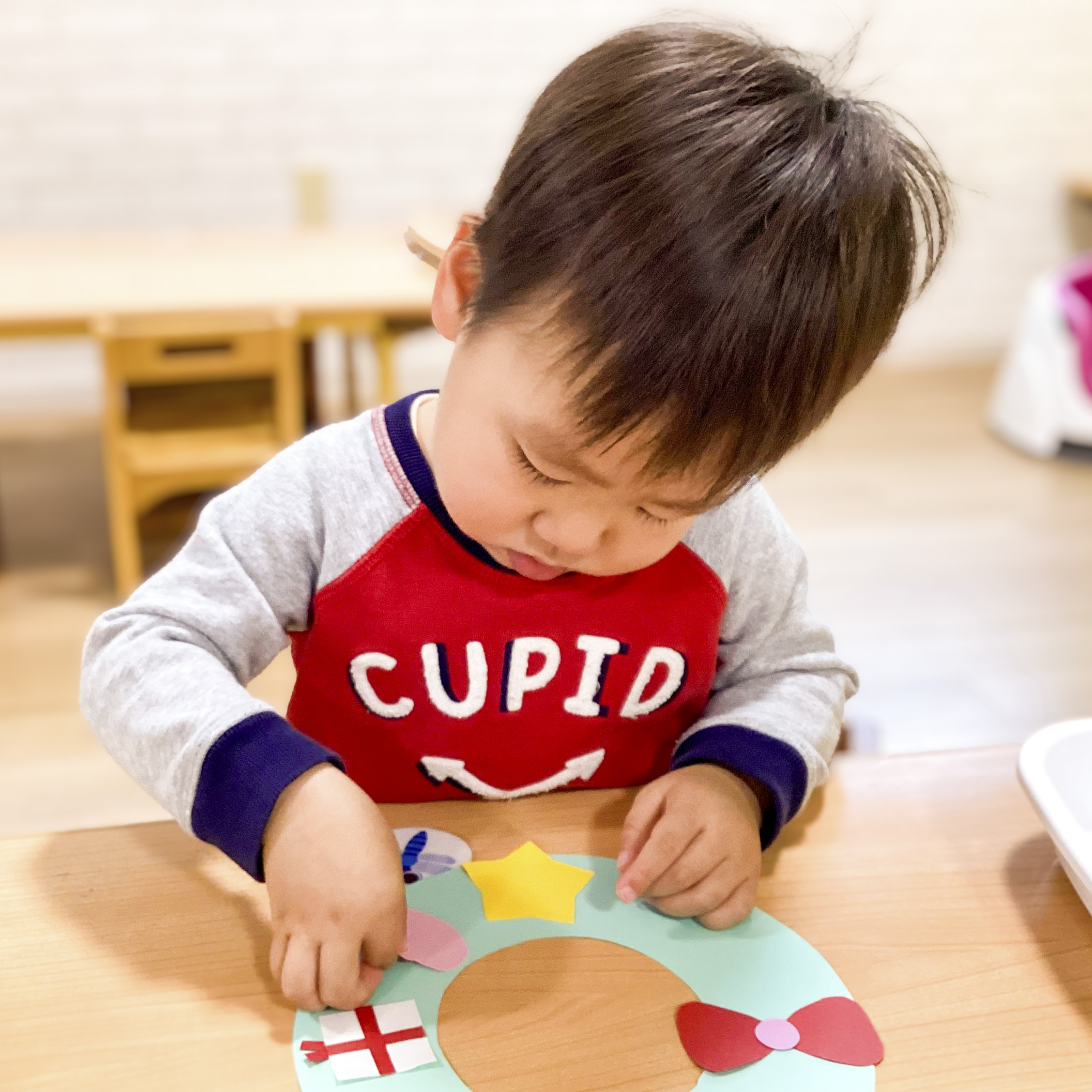 2歳児さんたちもクリスマスツリーを作ります🎄✨