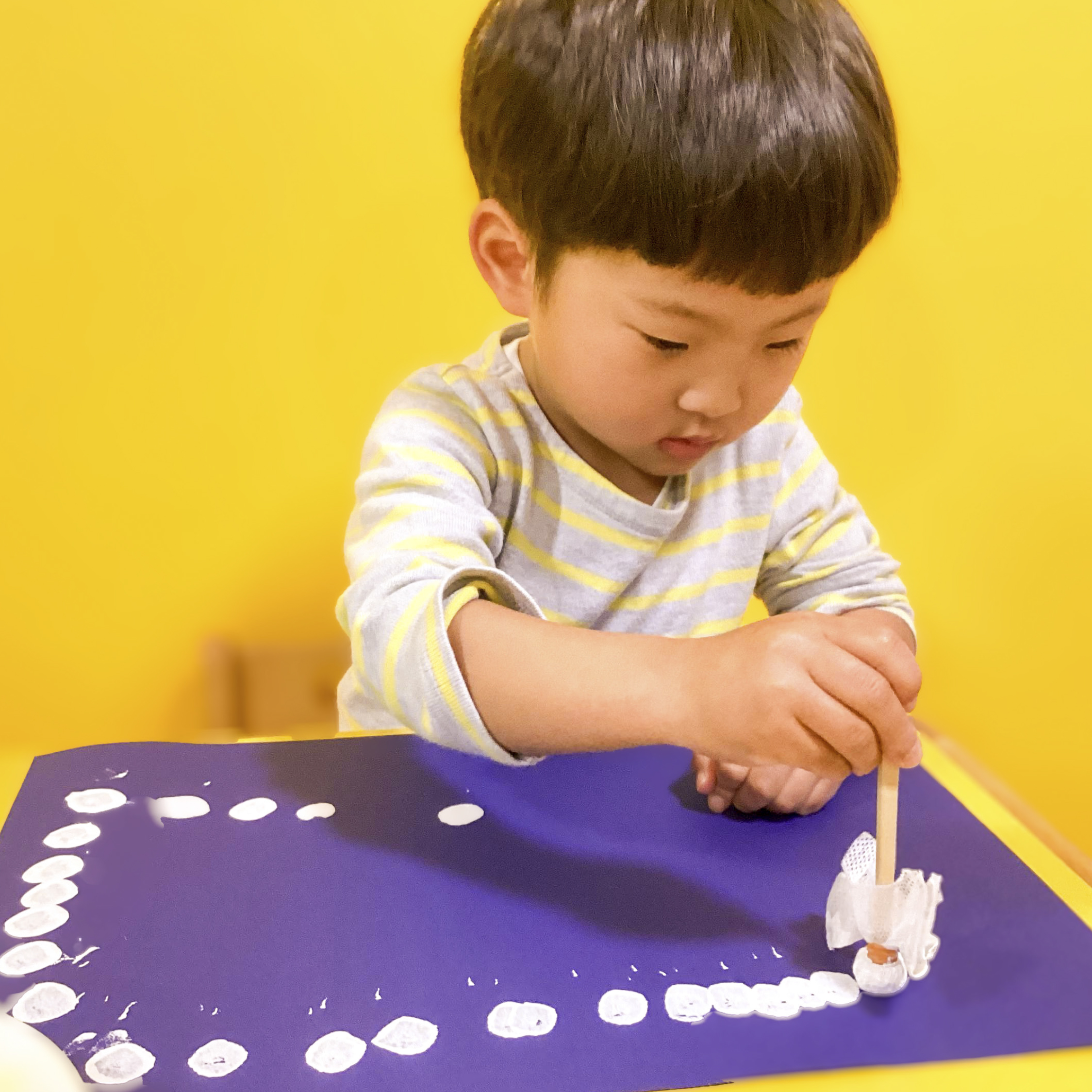 紺色の画用紙にトントントン・・・と、リズムよくスタンピングしていきます🤗