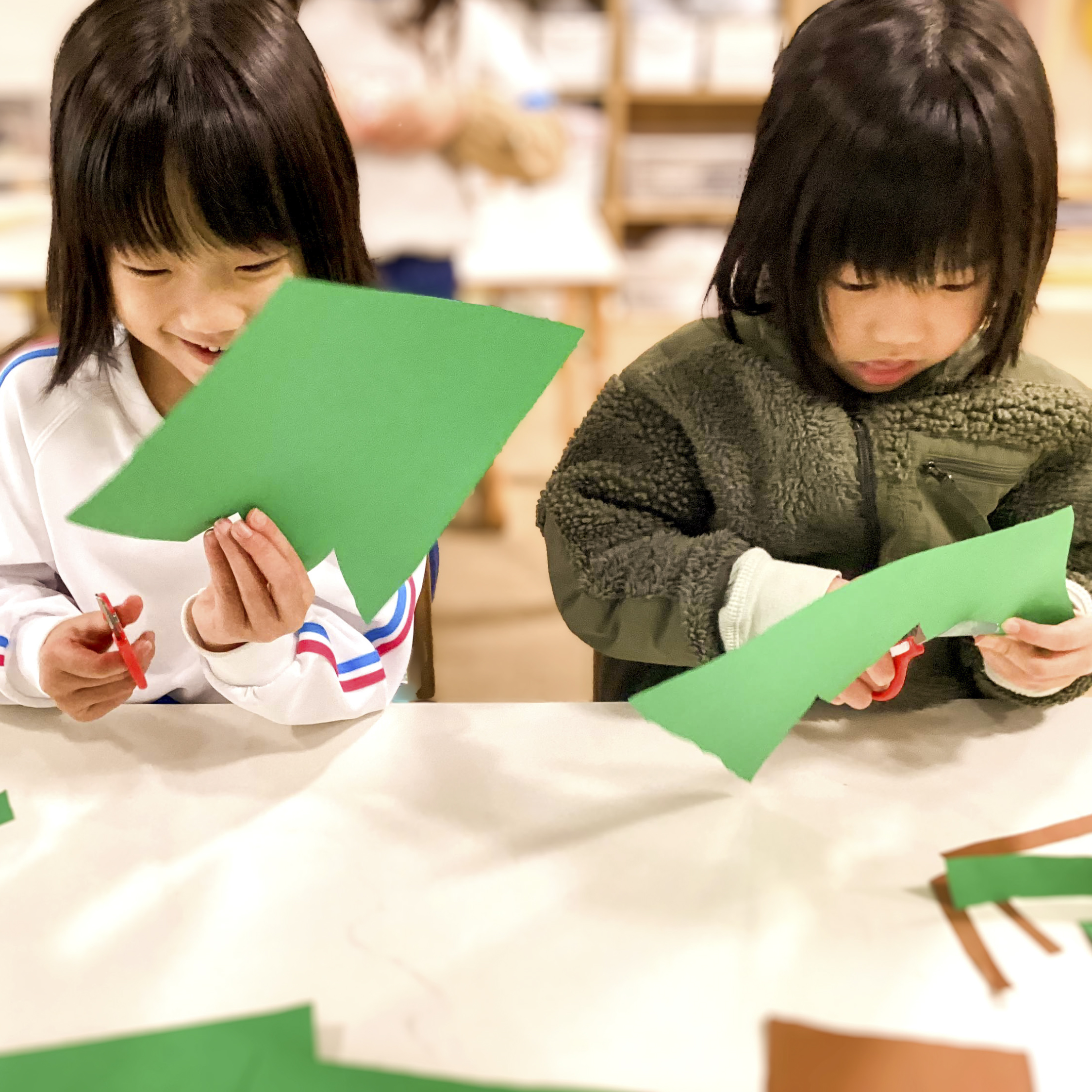 5歳児のお姉さんたちは、ハサミを使う事がとても上手です💗