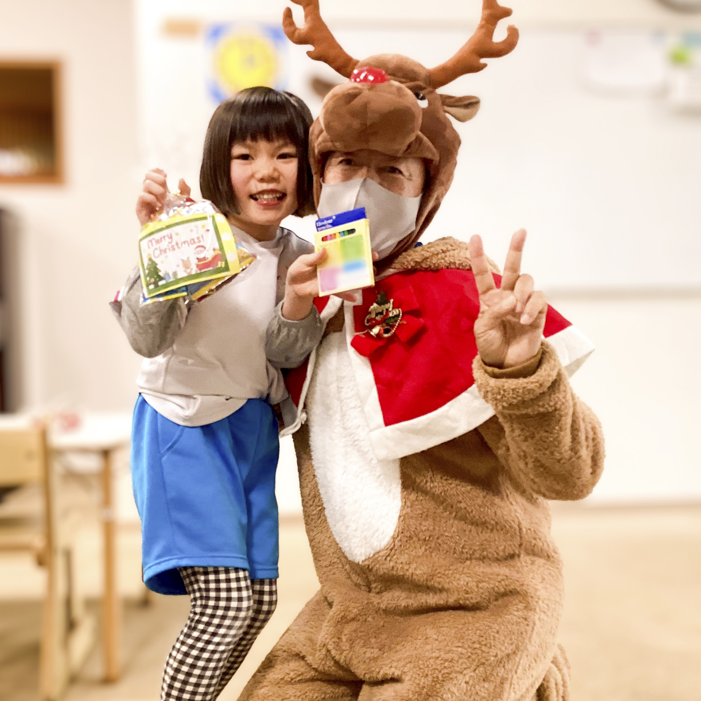 お部屋に戻ると鈴の音にのってトナカイさんがたくさんのクリスマスプレゼントをもってきてくれました🎅🎁